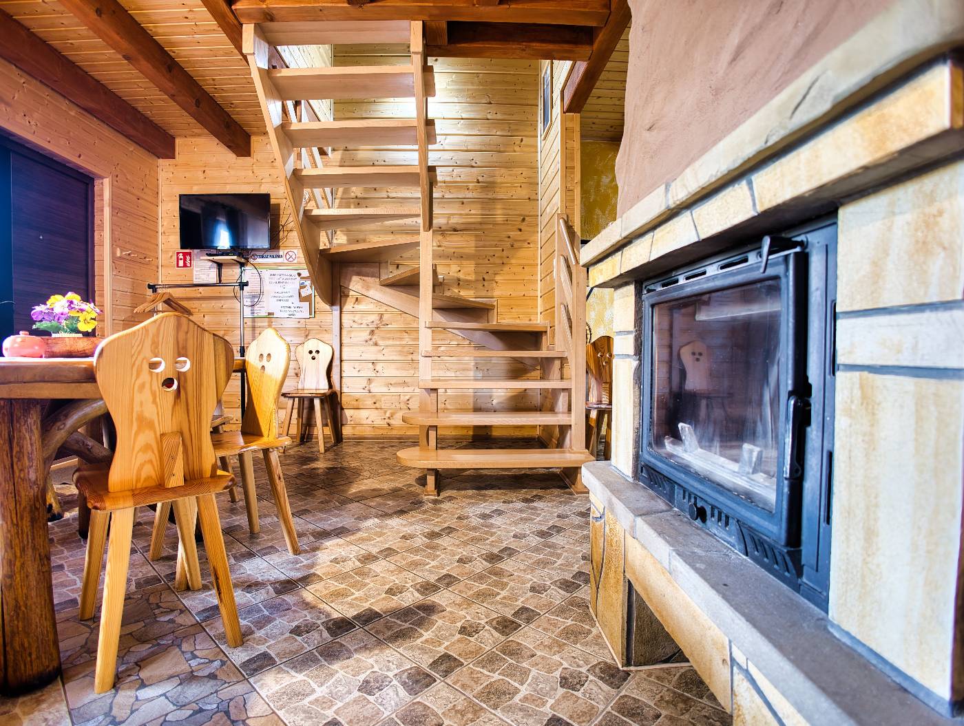 W sezonie grzewczym domek ogrzewany jest kominkiem- drewno w cenie domku